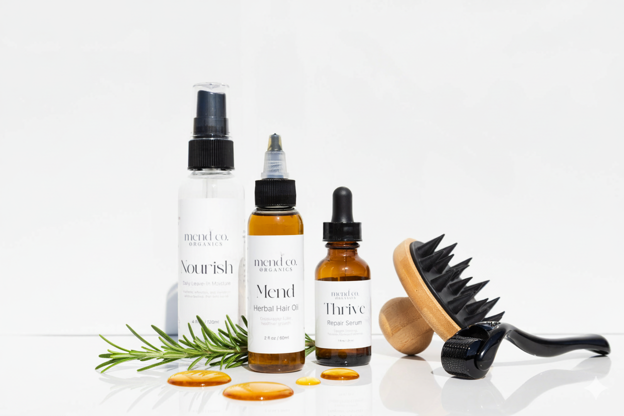 Mend Co. uses pure, plant-based ingredients that nourish your scalp and strengthen your strands — without harsh chemicals, fillers, or synthetic fragrances. Just honest, effective care for long-term growth and peace of mind.