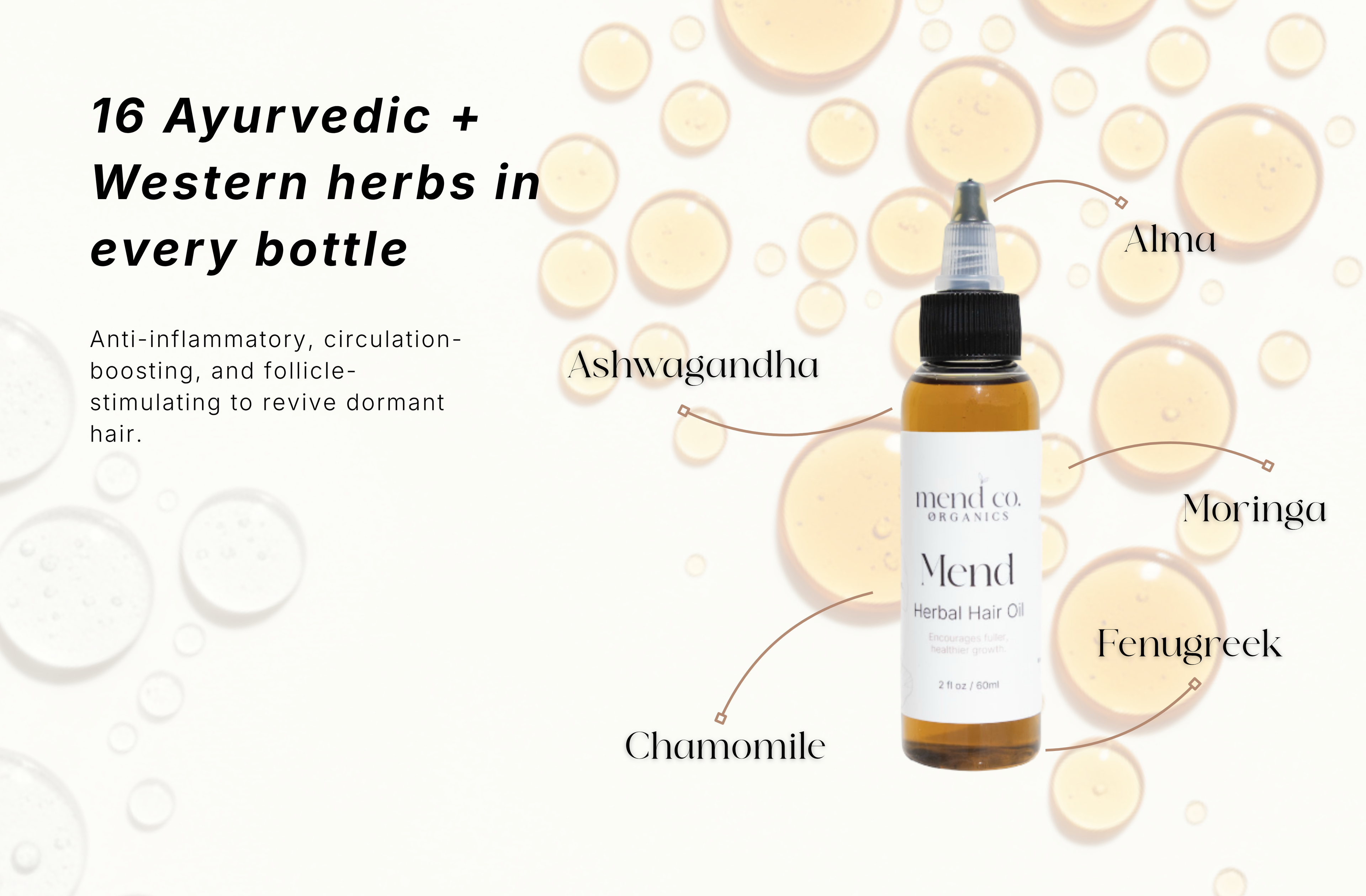 Mend Co. Organics is crafted for women facing postpartum shedding, stress-related loss, and/or sensitive scalps 🌱